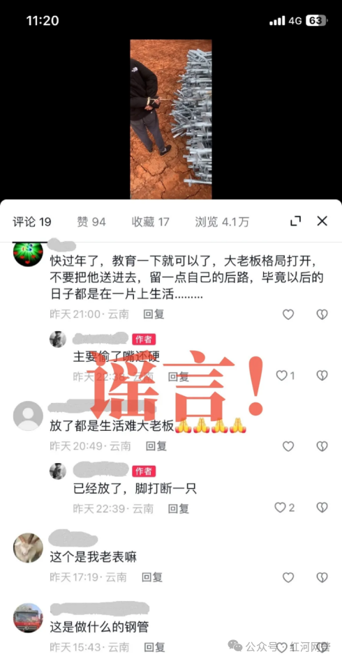 弥勒市公安局依法传唤视频发布者罗某某进行调查。经查,罗某某与朋友杨某某为制造噱头、吸粉引流,摆拍了相关视频,后由罗某某剪辑后发布到网络平台上。为了进一步让网民相信事件的真实性,罗某某回复网民评论称“偷盗者已经放了,脚打断一只”。
