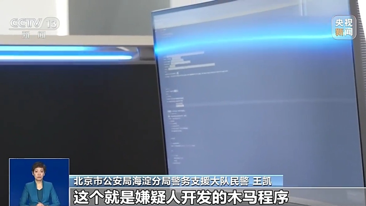 北京市公安局海淀分局警务支援大队民警 王凯:这个就是嫌疑人开发的木马程序,通过把这个木马程序封装到U盘里头,然后再插入受害公司的电脑内,它就会自动运行,这个过程非常短,插入到运行只不到一分钟的时间,它就可以对电脑的相关的数据进行爬取,并把爬取到的数据传到木马的控制端。