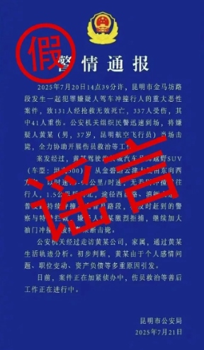 “警情通报”是公安机关权威信息发布的重要载体,“蓝底白字”代表着官方信息的公信力。发布虚假“警情通报”,炮制恶性网络谣言,捏造耸人听闻的细节,误导公众认知,不仅消费了网民情绪,更损害了政府公信力,甚至引发公众恐慌,其行为严重扰乱社会秩序。