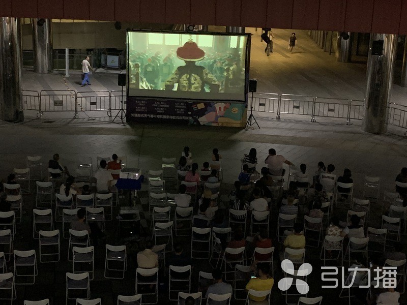 这场“首映”安排在7月3日晚上,组织者是吴中区木渎镇的一家影城。“首映”没放在影城内,而是在一处露天的广场上。广场上,由栏杆隔出来的观影区内,放着上百张椅子。椅子前,架着一块大幕。大幕前,是台投影机。