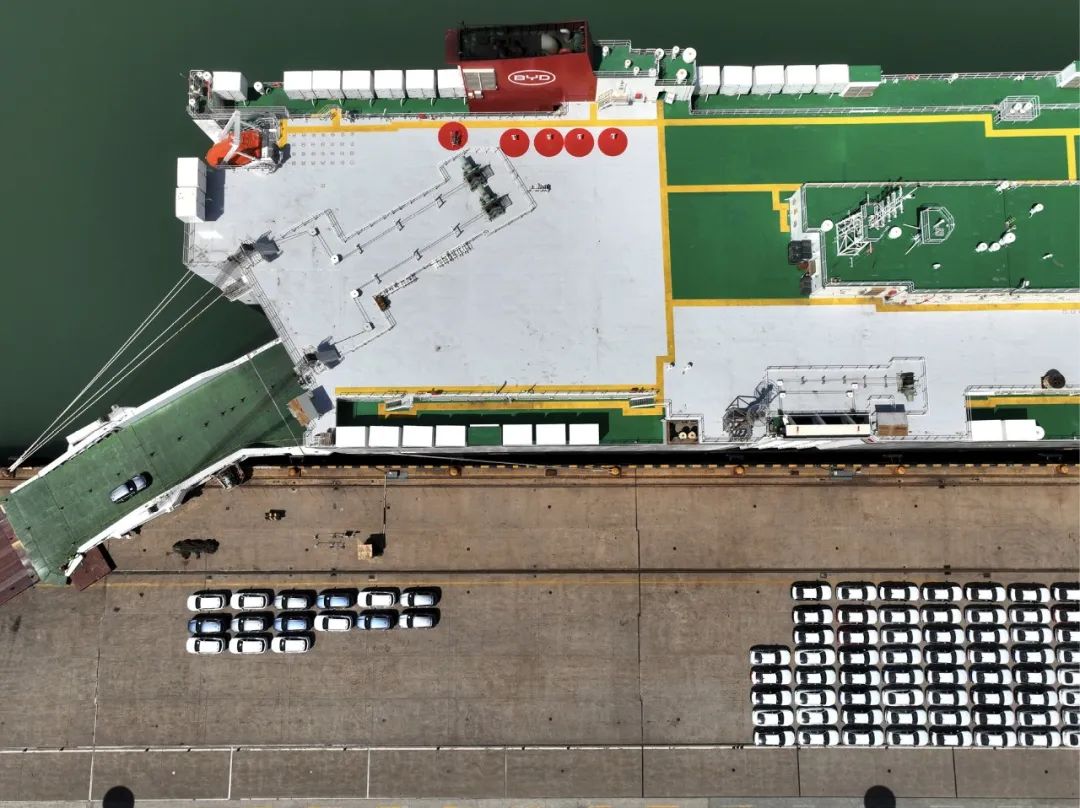 2024年4月25日,江苏连云港,2020辆比亚迪新能源汽车出口至巴西,刷新了该港新能源车单船出口纪录。