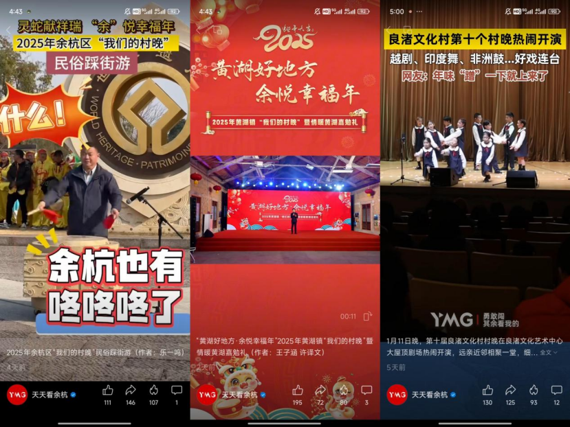 杭州市余杭区委网信办指导区融媒体开展“我们的村晚”主题传播活动,对“灵蛇献祥瑞 ‘余’悦幸福年”2025年余杭区“我们的村晚”系列活动、第十届良渚文化村村晚、黄湖镇“黄湖好地方 余悦幸福年”村晚等开展网络传播,充分展示中华优秀传统文化的独特魅力与人文乡村建设的新成就。