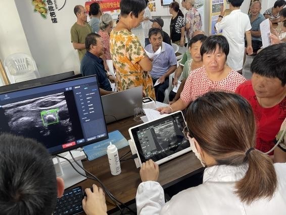 走进金东区曹宅岩后村,一辆移动诊疗车正停在村口的巡诊点,车上配置了心电图等医疗设备及常用药品,并提供刮痧、拔罐、针灸治疗、推拿等中医服务。随车配置的AI智能B超设备,通过内置AI算法支持甲状腺、乳腺、颈动脉等部位的智能辅助诊断,结合图像实时分析,可完成病灶探测、诊断分级及历史数据的存储管理。