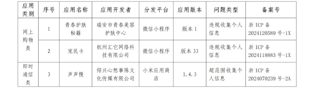浙江省通信管理局通报存在问题的APP(小程序)名单