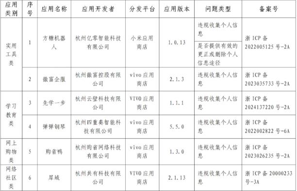 浙江省通信管理局通报存在问题的APP(小程序)名单