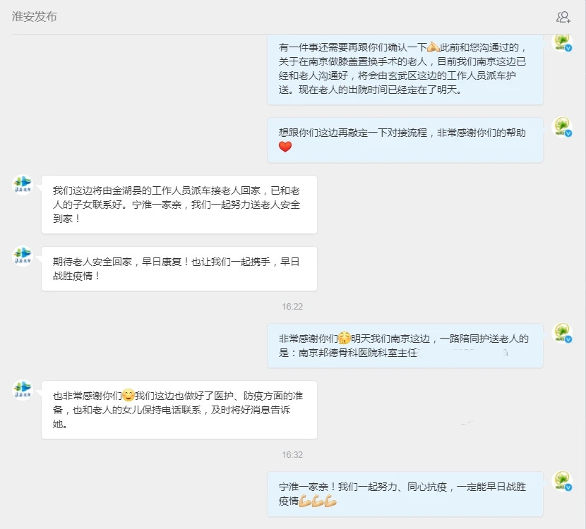 从了解困难到解决问题,一周不到的时间里,这位因疫情被“困”在南京、无法返家的淮安老人孙后梅,在南京、淮安两地“城市接力”下,通过全程闭环式转运安全回到了家中,这一“爱心接力”后,折射出疫情严格防控举措下,流淌的浓浓人文关怀与温情。