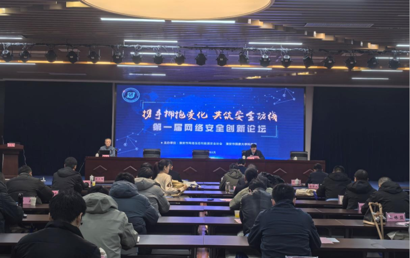 2025年2月27日,淮安市网络信息和数据安全协会会同淮安市国家大学科技园在淮安智慧谷会议中心举办第一届网络安全创新论坛。协会会长、淮安易云科技有限公司董事长朱峰平,协会驻会副会长、淮阴工学院原副校长陆为群,协会秘书长、市委网信办网络安全应急指挥中心主任孙权,协会党建指导员、市委网信办网安处副处长何权,淮安市国家大学科技园总经理刘刚等领导和嘉宾出席论坛。论坛由协会秘书长孙权主持。