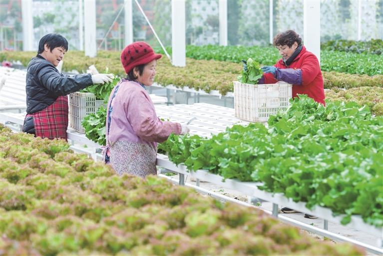 近日,在宿迁经开区南蔡数字农业产业园的大棚里,工人正在各自的岗位上忙碌着。近年来,宿迁经开区坚持科技兴农,加快发展数字农业,促进农业增效、农民增收,助力乡村振兴。