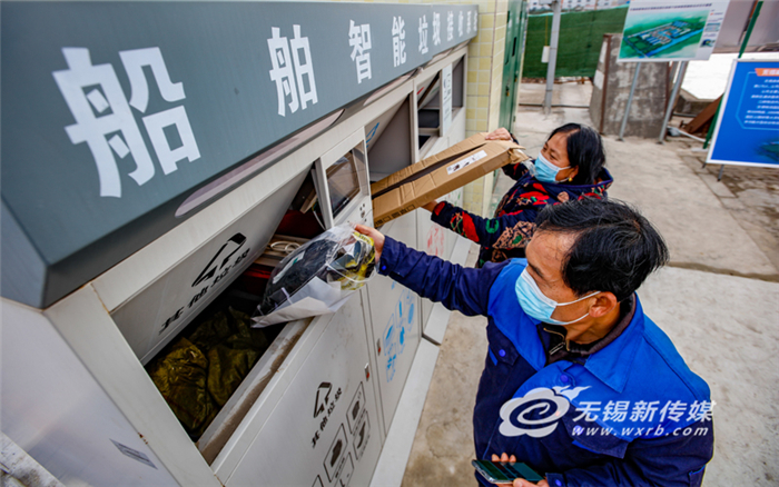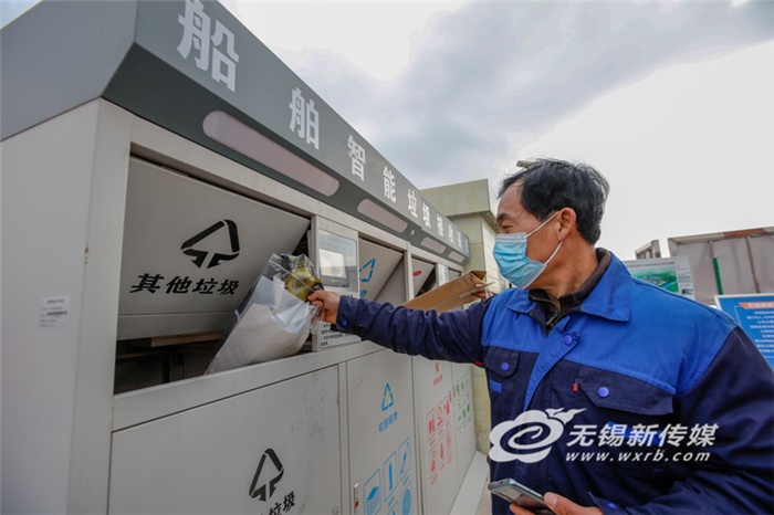 “船舶识别码CN20107419800,本次投放其他垃圾0.35公斤,可回收物0.97公斤,易腐垃圾0.5公斤。”7日上午,在无锡高新物流空港园区的码头上,船民方长树用手机扫码登录微信小程序后,将几个空的纸箱投放到“可回收物”垃圾桶里,船舶智能垃圾接收系统中间的屏幕上立即显示出上述船舶污染物投放处置信息。这是无锡市新吴区交通运输局引入的全市首个船舶智能垃圾接收系统,能有效改进船舶污染物的处理方式,实现船舶污染物信息数据化,切实保护港口水域生态环境,实现港口生产生活环境质量明显改善。
