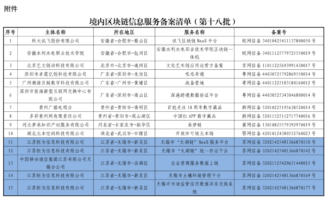 附件:境内区块链信息服务备案清单(第十八批)