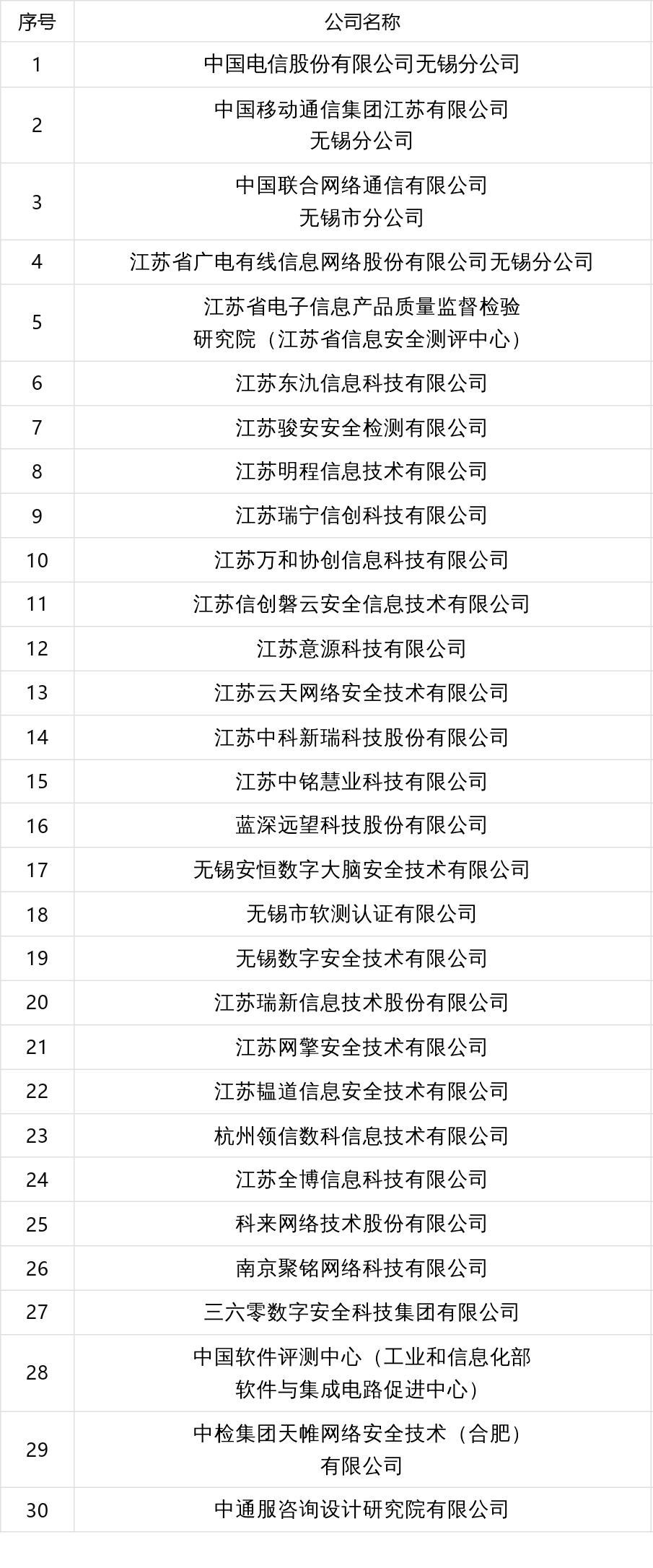 根据中共无锡市委网信办、无锡市工业和信息化局、无锡市公安局、无锡市数据局发布的《关于开展2025年度无锡市网络和数据安全技术支撑单位遴选的通知》要求,经单位自主申报、形式审核和专家评审等程序,拟选取以下30家单位作为“2025年度无锡市网络安全技术支撑单位”,22家单位为“2025年度无锡市数据安全技术支撑单位”,有效期1年。