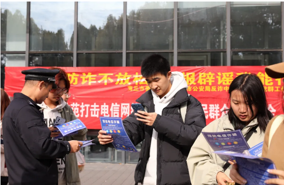 活动中,工作人员向过往学生发放《商丘市网络举报和辟谣手册》《预防电信诈骗》等宣传资料,面对面讲解网络诈骗识别方法、举报途径以及相关法律法规,并向大家介绍“国家反诈中心”APP使用方法和操作流程,引导学生不造谣、不信谣、不传谣,号召大家积极参与网络举报,依法维护自身利益。