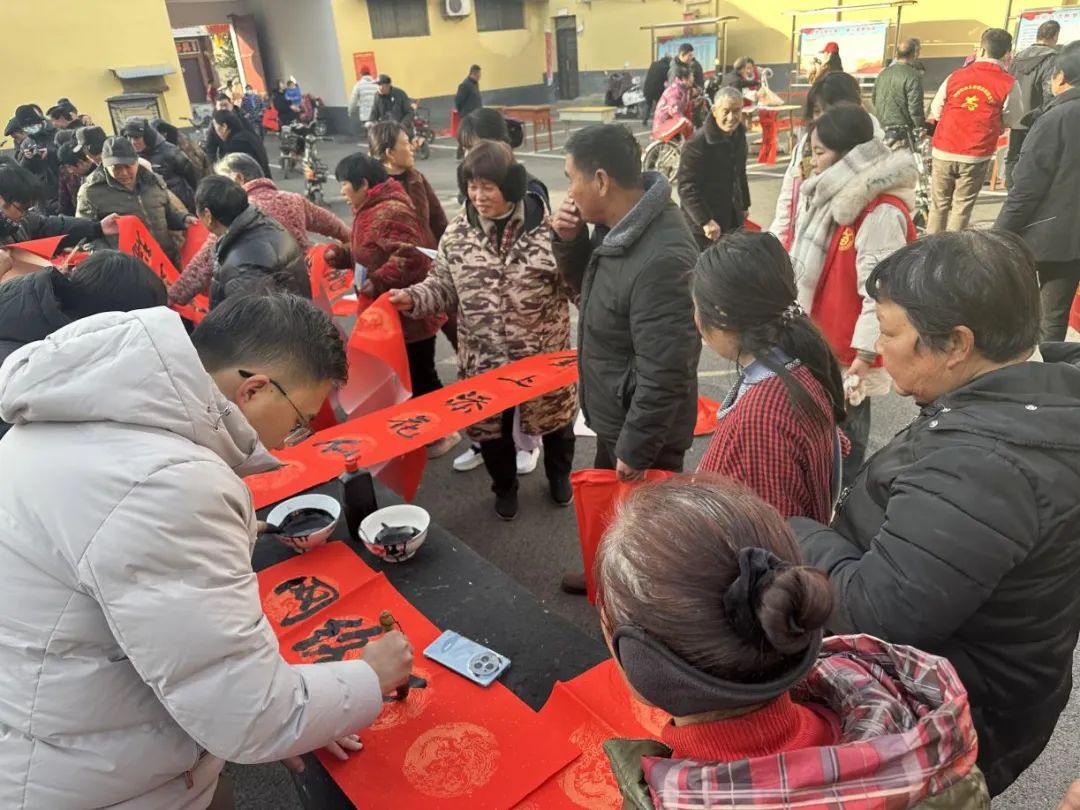 活动中,书法协会的老师们饱蘸浓墨、笔走龙蛇,一幅幅对仗工整、寓意美好的春联瞬间跃然纸上,以网络辟谣、网络安全、网络普法为主题的对联尤为引人注目,村民们一边欣赏一边挑选自己喜欢的春联,大家脸上洋溢着喜悦之情。一位大婶拿着刚挑好的春联笑呵呵地说:“能拿到书法老师为俺家写的春联,真是太开心了,这样的春联是外面买不到的,既喜庆又长知识,特别有意义!”