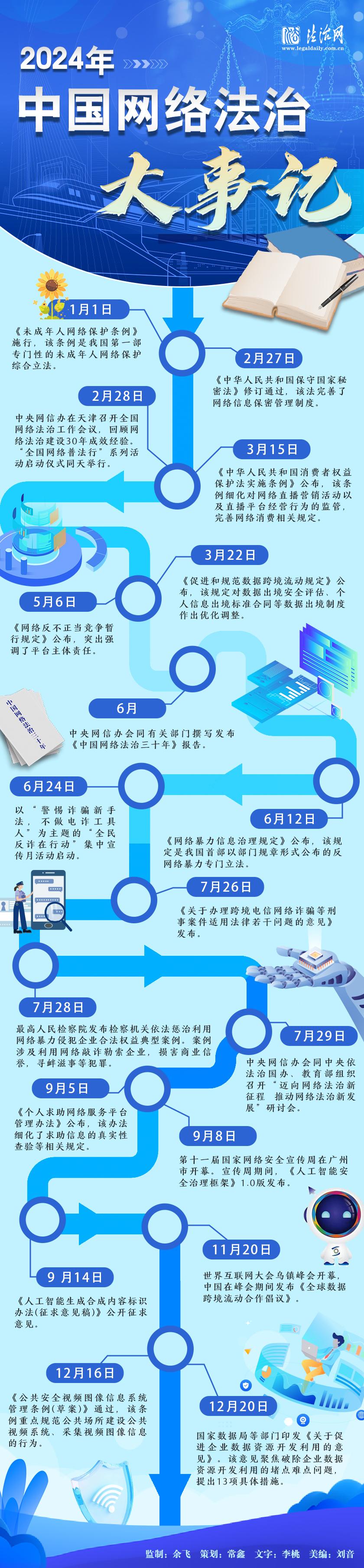 4月27日,国家互联网信息办公室发布《中国网络法治发展报告(2024年)》。这是首部国家部门层面发布的网络法治综合性年度报告,既是《中国网络法治三十年》报告的续篇,也是中国网络法治发展年度报告的开篇。让我们从这一年的大事记中,了解我国2024年网络法治的发展历程。