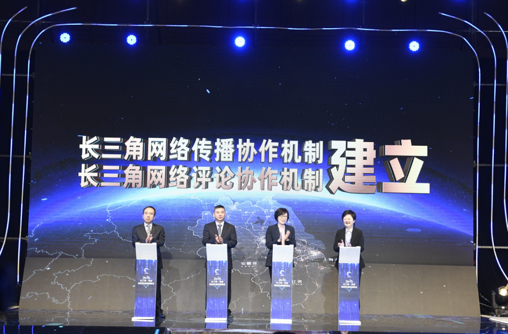 任振鹤在致辞中指出,深入贯彻党的十九届五中全会精神,扎实推进长三角一体化高质量发展,为实现国家“十四五”规划和2035年远景目标作出应有贡献,是长三角地区的使命担当。长三角网信事业发展的“同心圆”正在精心绘制,“新征程”面临共同使命。乘着国家战略的东风,江苏要与兄弟省市共抓“一体化”机遇,共植“深融合”基因,共育“复合型”人才,共建“新媒体”生态,把长三角网信事业不断推向前进,为共促“高质量”发展凝聚强大“正能量”和澎湃“动力源”。