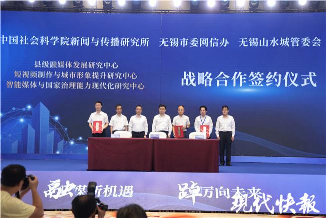 数字时代持续发展,媒体跨界融合也逐步迈向深化。现场,中国社会科学院新闻与传播研究所、无锡市委网信办、无锡山水城管委会签订战略合作协议。此次签约,将在中国社会科学院新媒体研究中心融媒体(无锡)实践基地基础上,成立县级融媒体发展研究中心、短视频制作与城市形象提升研究中心、智能媒体与国家治理能力现代化研究中心三大研究中心。