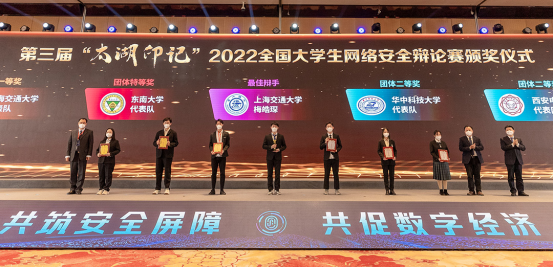 现场还为第三届“太湖印记”全国大学生网络安全辩论赛获奖队伍和个人颁奖。