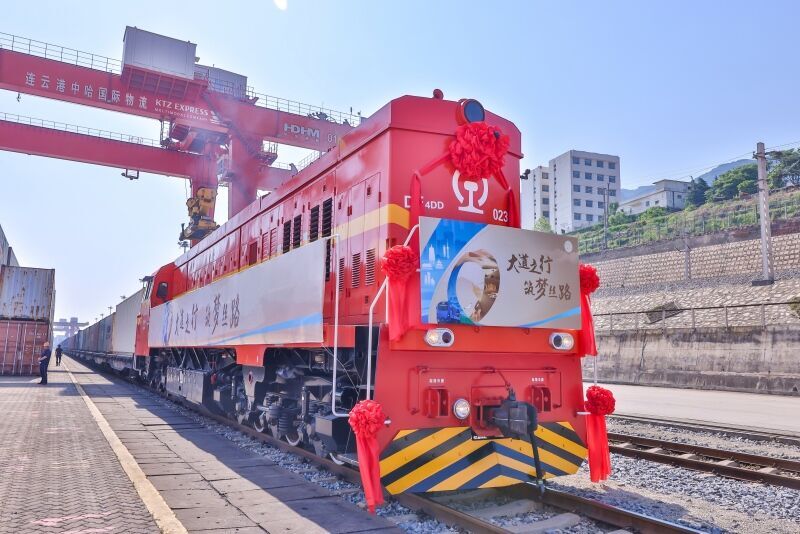十年大道同行,共筑丝路梦想。6月15日上午,在连云港中哈物流基地,随着“一带一路”卫星地图点亮,“大道之行 筑梦丝路”号中欧班列鸣笛启程,大型融媒体项目“大道之行 筑梦丝路”——“一带一路”十周年网络主题宣传活动正式拉开帷幕。