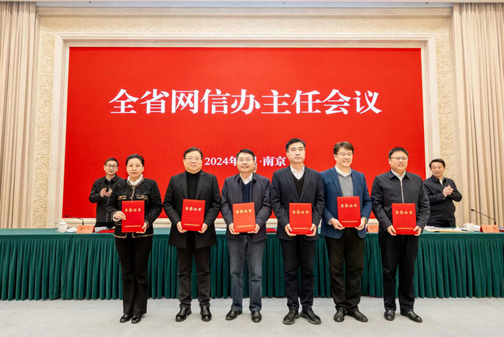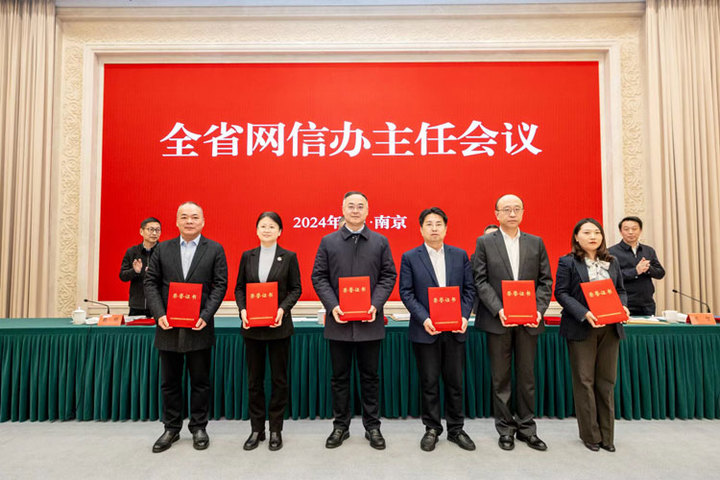 会议为2023年度全省网信工作创新案例和优秀调研成果颁奖。国家安全中心江苏分中心,南京、苏州、常州、南通市委网信办,省广电总台,徐工集团等7家单位负责人作交流发言。