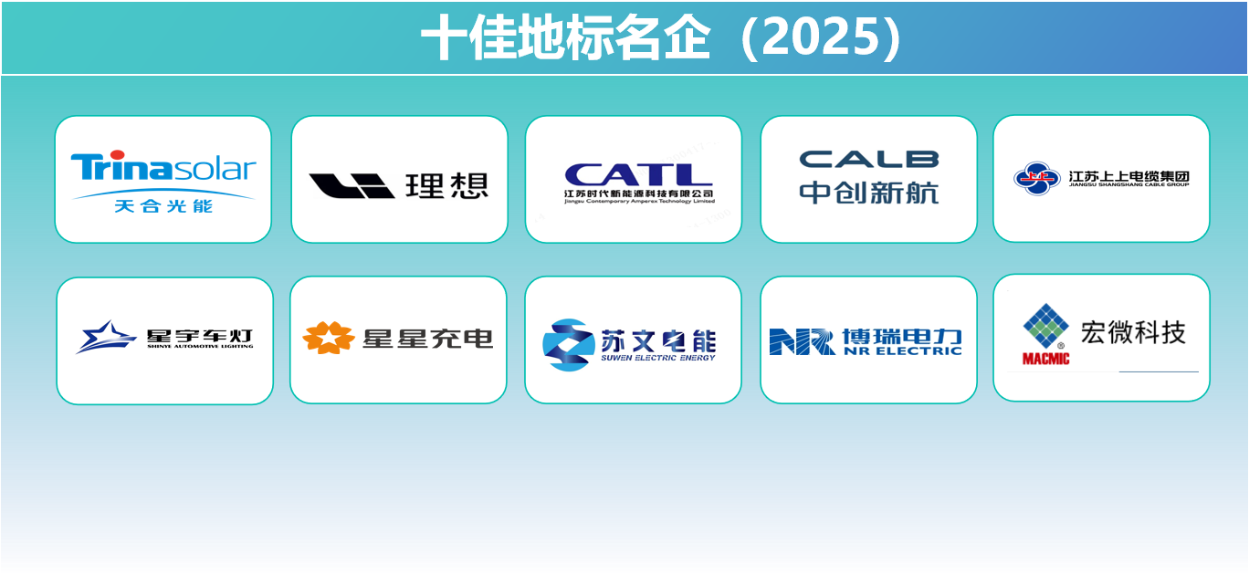 报告还公布了常州“5链10企”名企矩阵以及常州新能源20名品。围绕新能源“发、储、送、用、网”五大产业链环节,常州培育集聚了天合光能、理想汽车、江苏时代、中创新航、上上电缆、星宇车灯、星星充电、苏文电能、博瑞电力、宏微科技等“十佳”地标名企。常州新能源名品包括十大实力名品和十大科技名品,涉及动力电池、汽车电机、汽车车灯、电能服务、光伏玻璃、充电设施等。