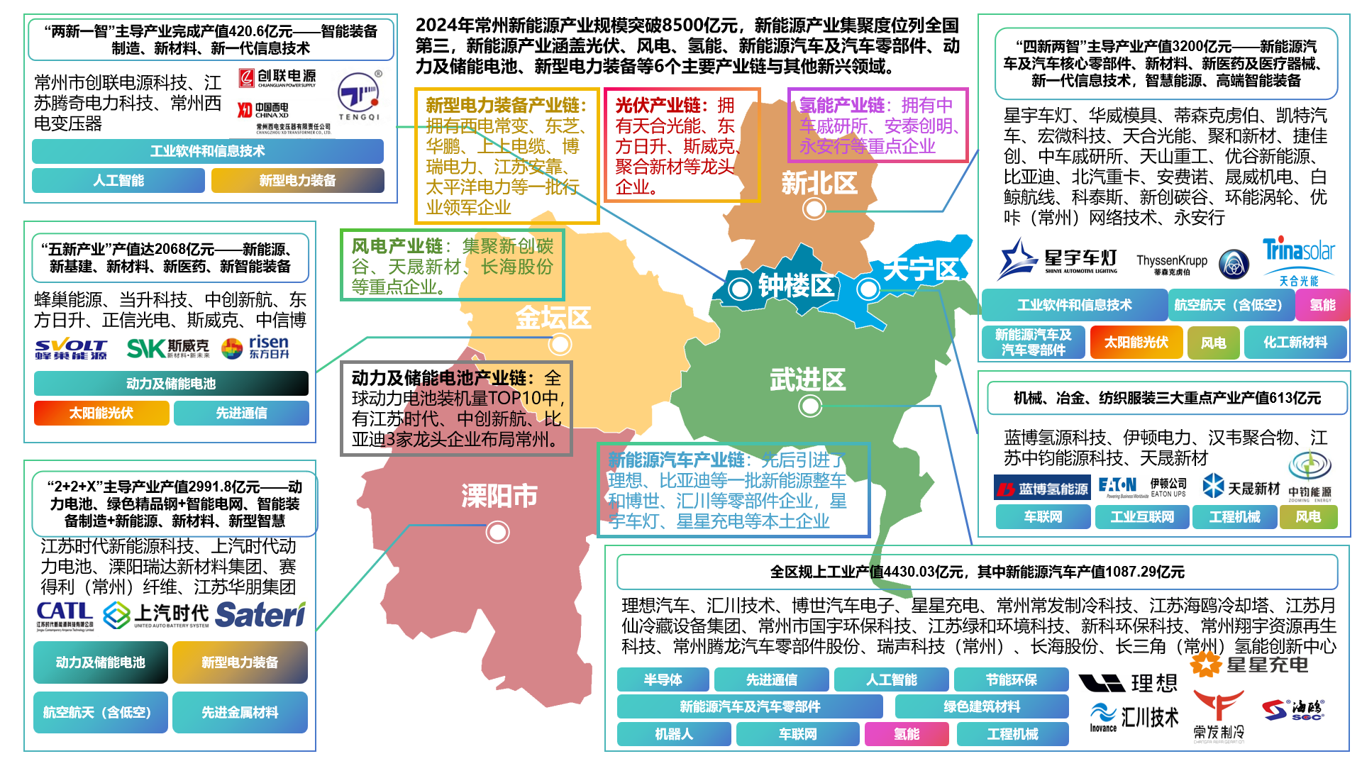 常州市在全国乃至全球新能源产业链中占据重要位置,“常州·中国新能源之都”被列入新时代中国工业形象区域标识矩阵(中国产业名片)。在2024年中国产业地理盛典上,“常州·中国新能源产业高地”作为新能源领域产业地标列入“中国有影响力产业名片”。