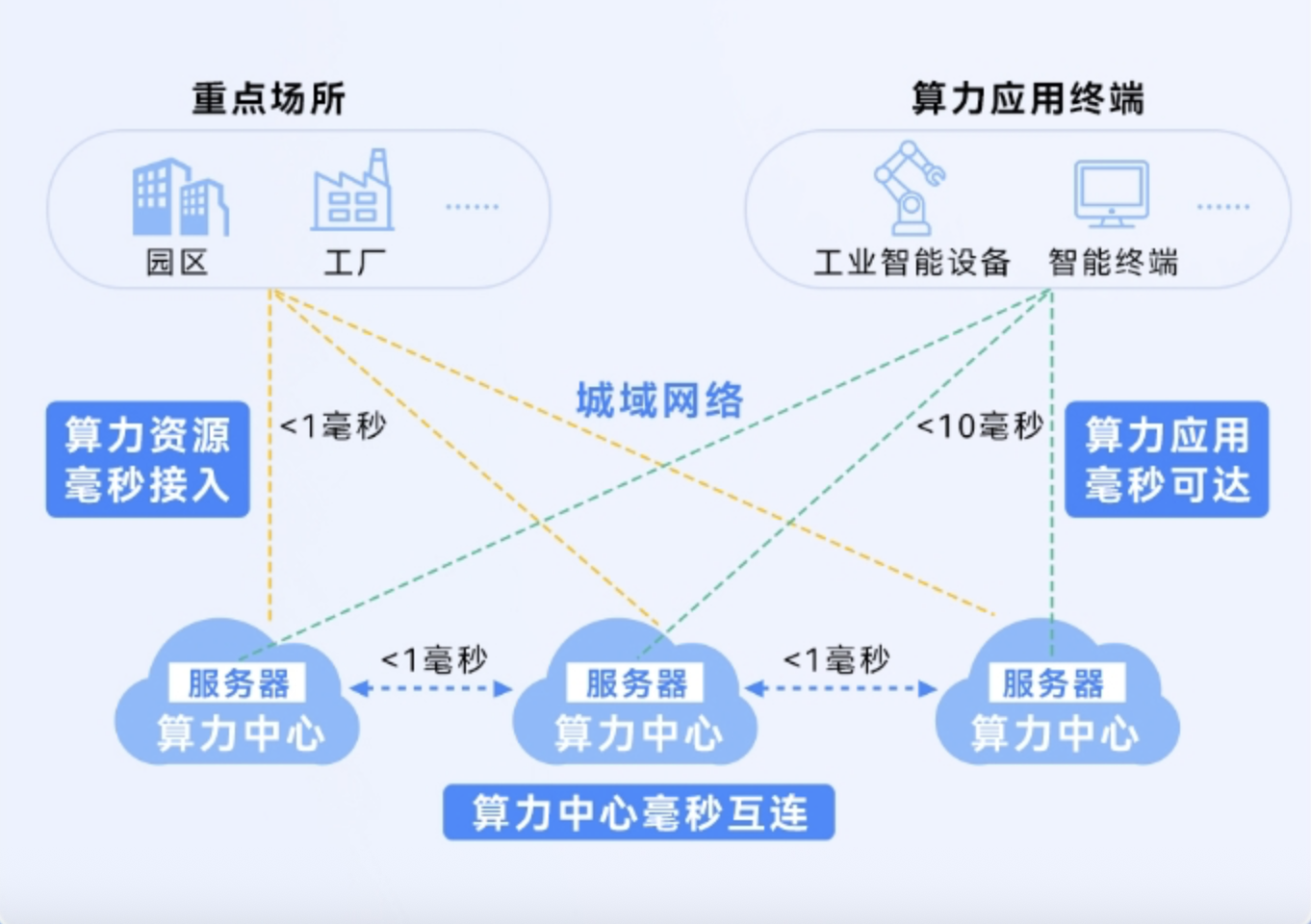 “毫秒用算”就是让电脑、工业智能设备等终端发出的指令,在千分之一秒(1毫秒)到百分之一秒(10毫秒)的极短时间内就能抵达城市数据处理中心(算力中心)并得到反馈。这个速度有多快?人眨一次眼大约需要100毫秒,而未来网络延迟将比这快10到100倍。