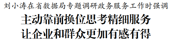 调研中,刘小涛听取政务服务和民生诉求办理工作情况汇报。他指出,政务服务工作事关广大企业和千家万户,要持续把12345热线打造成为收集和解决群众、企业诉求的总平台,把“高效办成一件事”打造成为便企惠民的总抓手。要加快数智化改革,以数据为核心,围绕服务企业、服务民生,在智慧化、集成化、标准化上下功夫,扎实推动产业基础、政府服务流程、城市治理模式再造,更大范围加强部门协同和服务集成,带动政府治理能力整体提升,不断增强企业和群众的满意度、获得感。