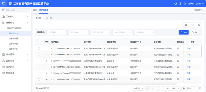 在此背景下,江苏省财政厅牵头推进国有资产智慧监管平台建设,前期已在无锡江阴市、南通通州区、盐城东台市开展试点,积累了丰富的清查摸底、科学监管、盘活利用经验。试点实践中发现,传统监管模式存在资产底数不清、利用效能不高、数字化水平参差不齐等问题,部分国有企业和行政事业单位存在低效闲置资产,产权不清、权属不明等问题也给资产盘活带来阻碍。为破解这些痛点,江苏省整合全省各级国有资产数据,构建覆盖全面、功能完善的智慧监管平台,实现从“分散管理”向“集中智治”的转变。