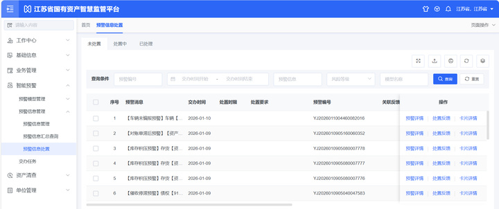其次是监管流程的全生命周期闭环。“平台功能设计上,聚焦国有资产配置、使用、处置等重点环节,集成基础信息管理、日常业务审批、智能监督预警等核心模块,推动实现国有资产全生命周期动态实时监管。”该负责人表示。基础信息管理方面,分类设置房产、土地、股权、债权等全品类“资产信息卡”,为全省国有资产建立数字档案,实行“一资一档”精细化管理;日常业务管理方面,设置资产配置、出租、处置、股权投资等资产管理重点环节线上登记审批功能,以“全程留痕迹”推动实现“权力受监督”。风险智能预警方面,嵌入110个智能预警模型,通过大数据手段自动抓取数据、识别风险,并根据风险等级分类推送“黄、橙、红”三色预警,及早发现并处置国有资产管理中的潜在风险与漏洞。