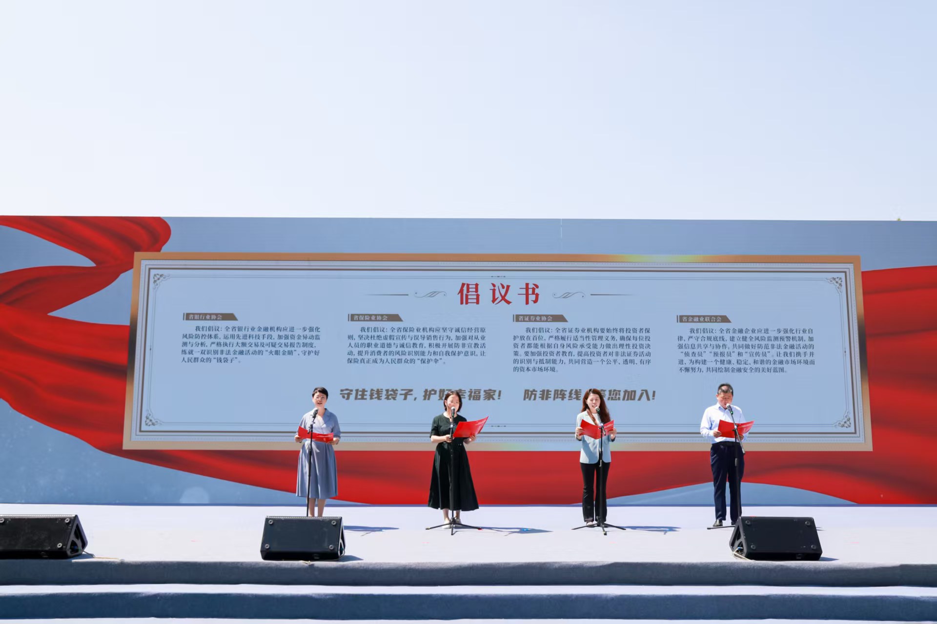 活动现场,省银行业协会、省保险业协会、省证券业协会、省金融业联合会发布“共筑防非阵线”倡议书。南京市公安局鼓楼分局、华泰证券、江苏银行、江苏农商联合银行、江苏信保集团、镇江农商行、海门农商行等单位,通过以案说法、套路解析、AI机器人、情景剧、相声、歌曲改编等群众喜闻乐见的形式,将防非知识传递给广大群众。