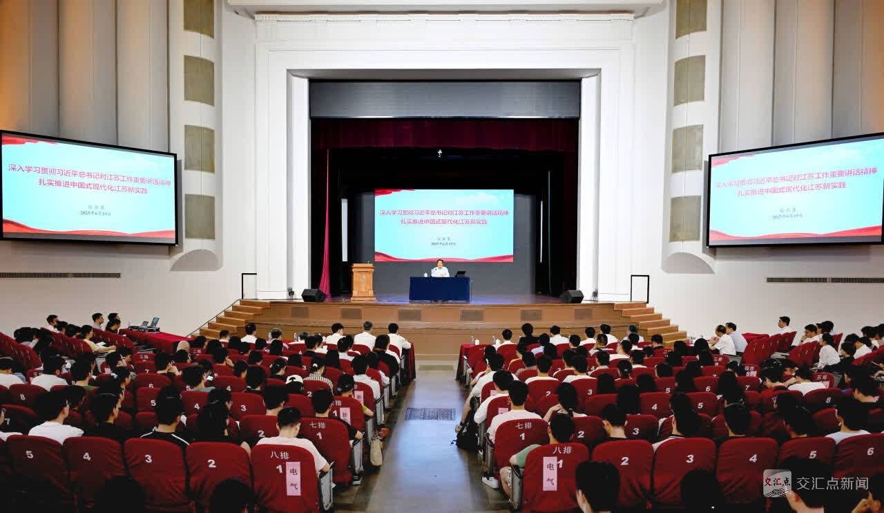在东南大学四牌楼校区大礼堂,信长星首先与大家一起重温党的十八大以来习近平总书记对江苏工作重要讲话精神。他指出,习近平总书记对江苏发展一直十分关心、寄予厚望,党的十八大以来,多次亲临江苏考察、参加全国人代会江苏代表团审议,多次发表重要讲话、作出重要指示,为江苏擘画了“强富美高”宏伟蓝图,强调江苏要“在改革创新、推动高质量发展上争当表率,在服务全国构建新发展格局上争做示范,在率先实现社会主义现代化上走在前列”,殷切希望江苏“在推进中国式现代化中走在前、做示范”,赋予江苏“经济大省要挑大梁,为全国发展大局作贡献”的重大责任,为我们做好江苏工作提供了科学指引和根本遵循。我们要把学习贯彻总书记重要讲话精神作为贯穿全部工作的主线,推动江苏发展不断取得新的更大成绩。