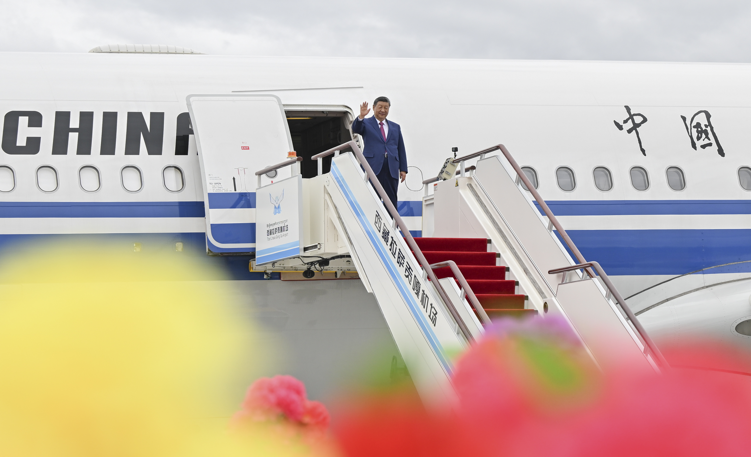 习近平率中央代表团抵达拉萨出席西藏自治区成立60周年庆祝活动