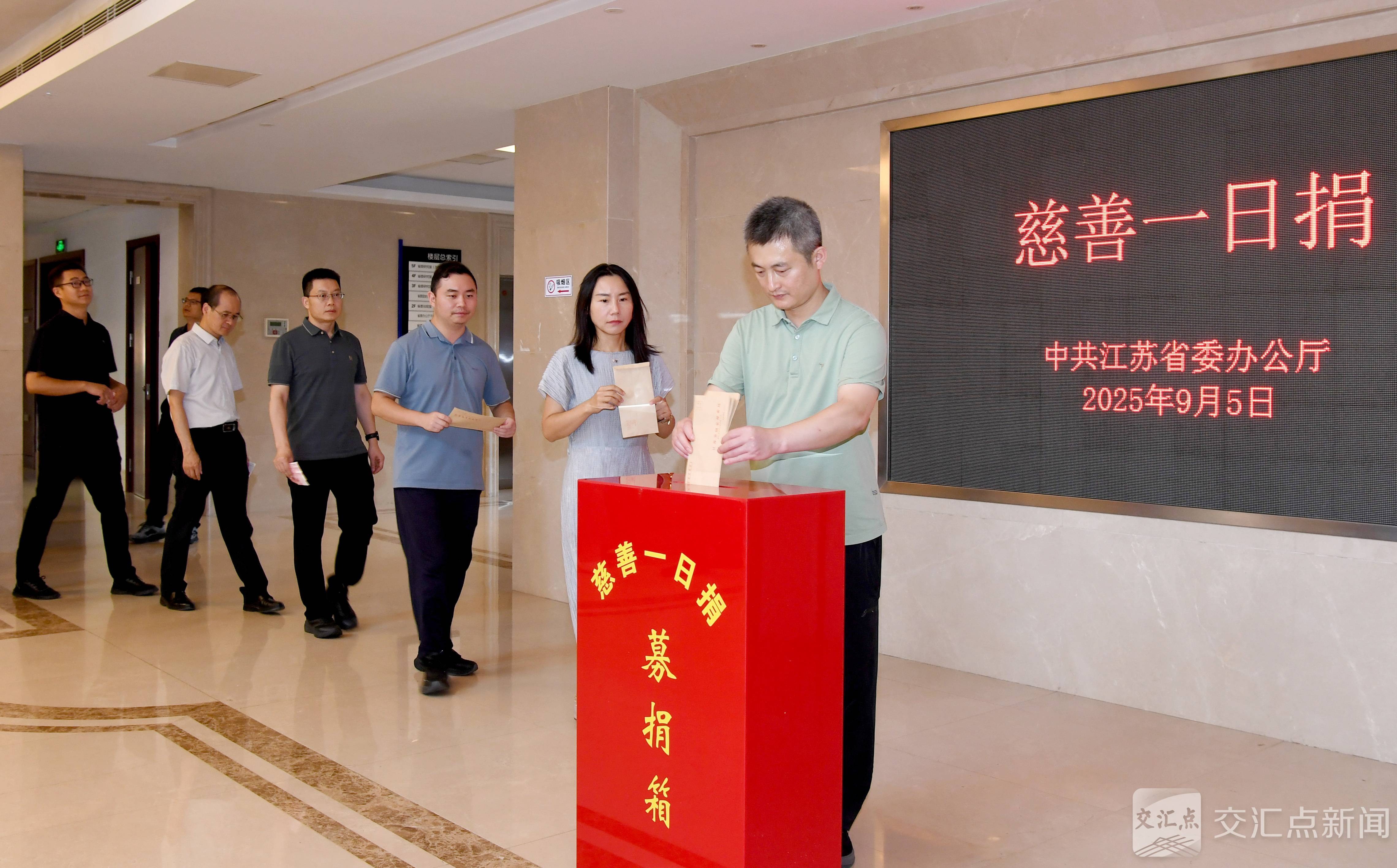 在省委办公厅四楼会议室、省人大常委会会议厅、省政府办公厅八楼会议室、省政协机关一楼大厅,省领导将捐款投入捐款箱,机关工作人员依次上前,踊跃捐款、奉献爱心。