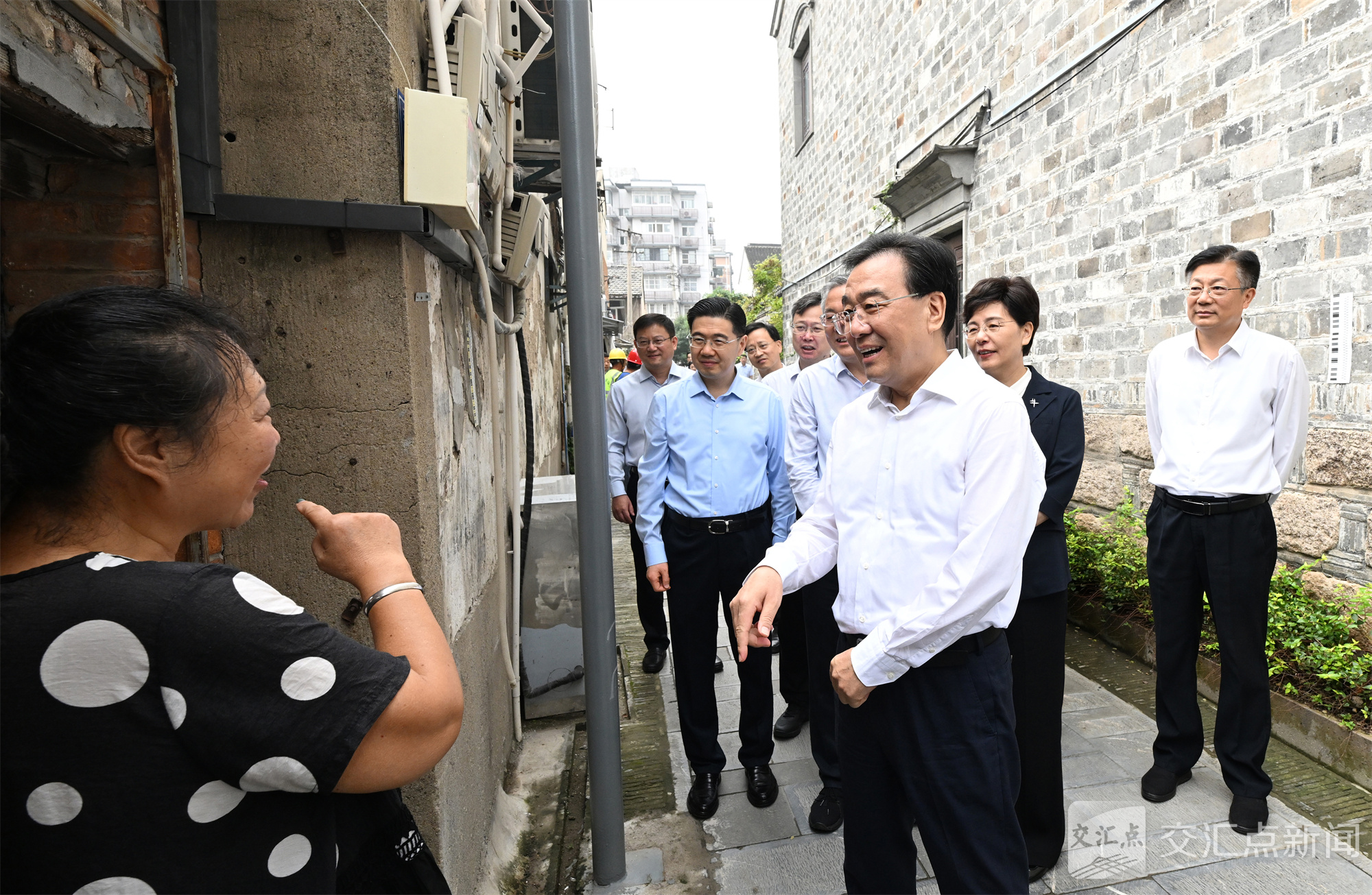 在荷花塘历史文化街区,纵横交错的街巷、斑驳的墙砖见证着岁月的痕迹。信长星来到社区共建中心,详细了解街区整体概况和保护性更新情况,并实地察看高岗里、孝顺里等街巷,与居民交流。他指出,老城区保留了这样规模的明清传统居住区,非常宝贵。要精心保护好街巷肌理和建筑风貌,多下“绣花”功夫实施微改造,完善公共服务设施,改善居民生活环境,在留住记忆和乡愁的同时,有机融入现代生活气息。在明故宫遗址公园,信长星察看考古发掘区,要求加强遗址保护,有重点地进行系统考古发掘,做好研究阐释和展示传播。地处长江路的钟岚里,紧邻众多历史文化场所。信长星仔细了解钟岚里历史变迁和建筑保护修缮情况,要求巧妙运用传统工艺与现代技术,精益求精做好保护修缮工作,因地制宜植入新业态,让历史建筑焕发新活力。