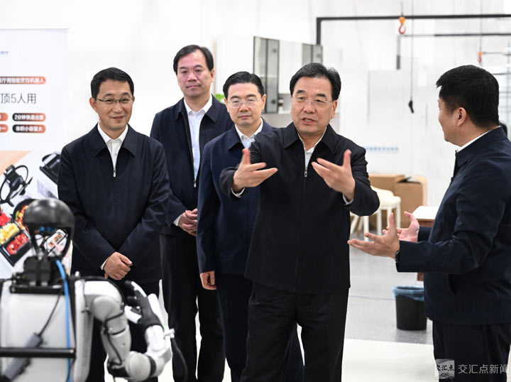 苏州市具身智能机器人综合创新中心是该市重点打造的产业创新与集聚平台。信长星来到展厅和训练中心,详细了解苏州相关产业发展情况,观看物流分拣、装配检测及医疗、家居、餐饮等应用场景演示,与技术人员深入交流。他指出,人工智能是引领新一轮科技革命和产业变革的战略性技术,充满了无限可能和潜力。苏州在人工智能领域已经形成较好基础,要瞄准前沿技术和细分领域,扎实推进科技创新、产业发展和应用赋能,引领生产方式、消费模式变革,加快打造人工智能产业高地。在魔法原子机器人科技有限公司,信长星仔细询问产品迭代升级、市场销售等情况,察看人形机器人、仿生四足机器人的内部结构和关键零部件,希望企业抢抓机遇、整合资源,构建开源开放创新体系,推出更多顺应市场需求的智能终端产品。
