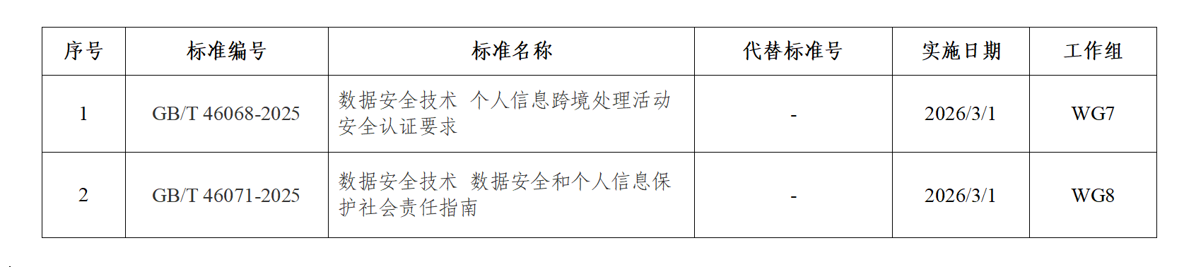 近日,国家市场监督管理总局、国家标准化管理委员会发布的2025年第21号《中华人民共和国国家标准公告》,由全国网络安全标准化技术委员会归口的2项国家标准正式发布。标准具体清单如下: