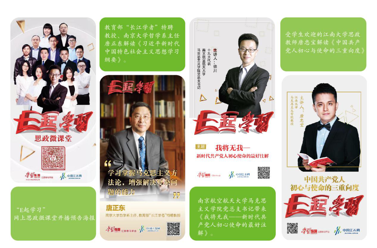 (三)“学习强国”平台运维势头强。中国江苏网负责运维的江苏学习平台主动作为、加强策划,紧扣中央决策部署和省委中心工作,全面推进平台线上内容生产与线下活动开展。推出“E起学习”网上思政微课堂。邀请“长江学者”特聘教授、高校马克思主义学院院长和优秀青年思政教师带领大家更好的学深悟透习近平新时代中国特色社会主义思想,以及如何学好用好《习近平新时代中国特色社会主义思想学习纲要》。22期视频节目全部在“学习强国”全国学习平台集纳成专栏呈现,点击量突破2000万,该项目还入选了全省网络视听新媒体十佳栏目。2020年,我们将继续在全省遴选优秀高校、中小学优秀思政教师,制作“E起学习”网上思政微课堂第二季,在全省,乃至全国推广。