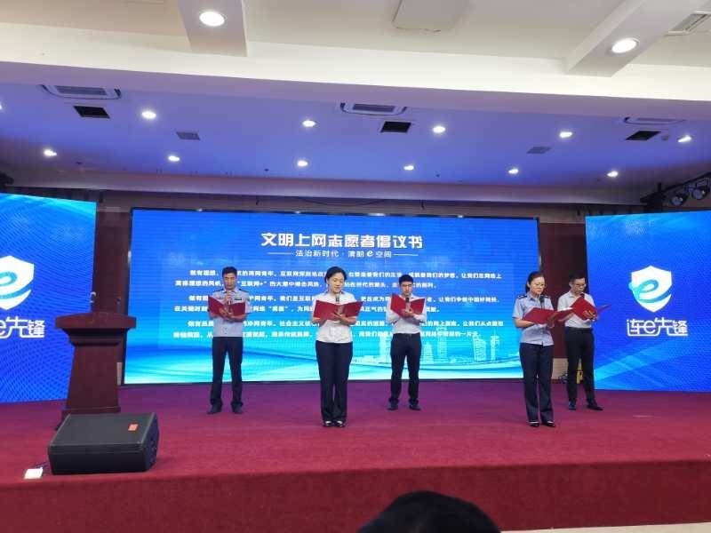 8月21日上午,连云港市委网信办联合市教育局、市公安局、市司法局、市文广旅局、市市场监督管理局、市通管办共同举办“法治新时代·清朗e空间 连云港2020网络综合治理·e起行”专项行动推进会。市委宣传部副部长、市委网信办主任李武致辞。