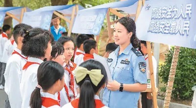 江苏省海安经济开发区实验小学校园内,民警向学生讲解未成年人网络保护知识。翟慧勇摄(人民视觉)