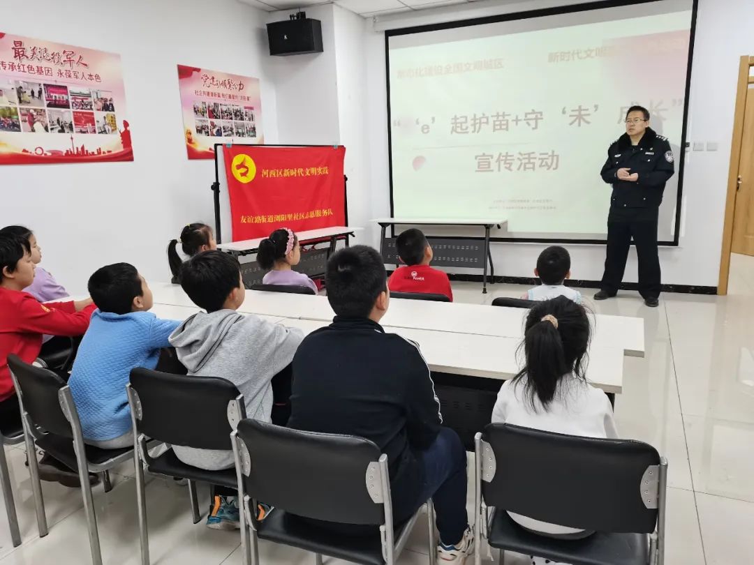 为深入营造文明健康的网上舆论氛围,增强青少年网络安全意识和自我保护能力,加大涉未成年人网络生态治理、网上有害信息举报和网络辟谣宣传工作力度,近日,友谊路街浏阳里社区开展“‘e’起护苗 守‘未’成长”宣传活动。