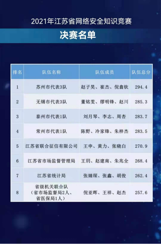 8月17日,由中共江苏省委网信办、江苏省通信管理局、江苏省总工会主办的2021年江苏省网络安全知识和技能竞赛在互联网上举行。来自省级党政机关、群众团体、媒体单位、国有企业以及13个设区市的330支参赛队伍共计1032人参加了初赛。今年的参赛队伍和人数较2020年分别增加了57%和53%。