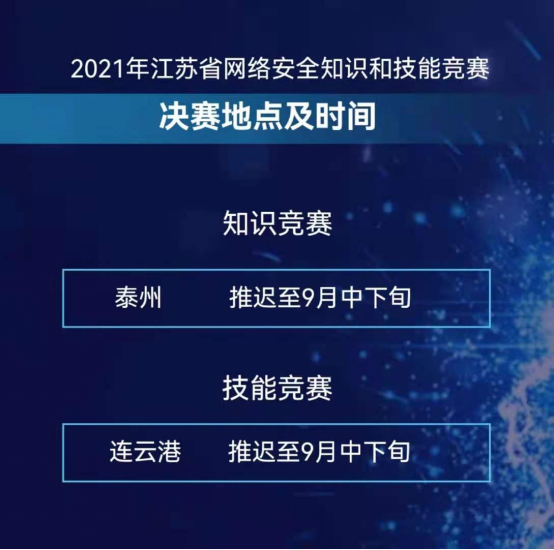决赛将于9月中下旬分别在泰州市(知识竞赛)和连云港市(技能竞赛)进行。