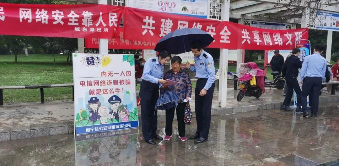 睢宁县县委网信办联合县公安局在九月广场组织专项宣传,主要以展示展板、悬挂横幅、发放传单、现场讲解、接受咨询等多种形式。同时,向过往群众和街面个体户积极宣传法律法规知识,讲解预防网络电信诈骗、辨别网络虚假信息、抵制网络谣言等网络安全常识。