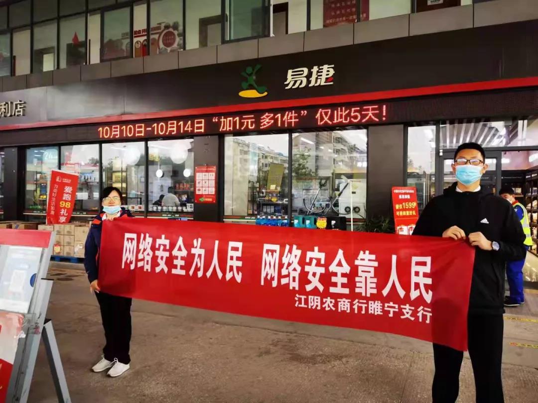 睢宁县委网信办联合人行睢宁支行、县地方金融监管局以“网络安全为人民 网络安全靠人民”为主题,组织辖内金融机构开展网络安全宣传周活动。