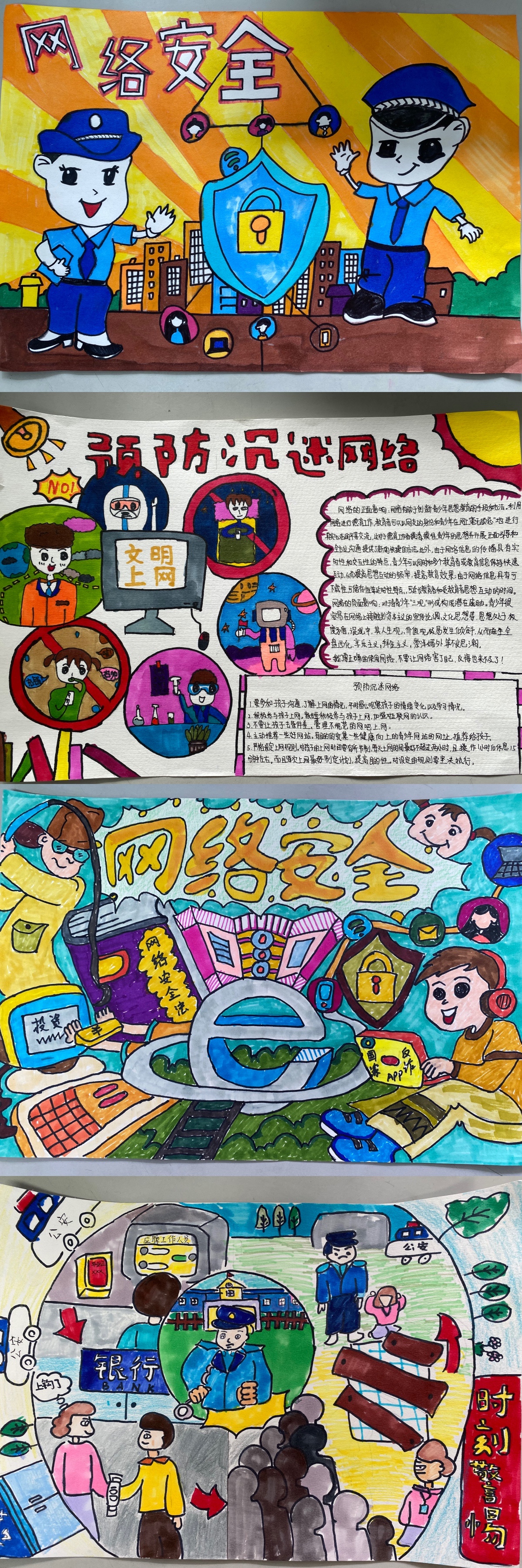 10月10日,大队部号召少先队员们进行了“绘网络安全”儿童画优秀作品的征集活动。孩子们以绘画为载体,用孩子的童心来描绘他们心中的网络安全。