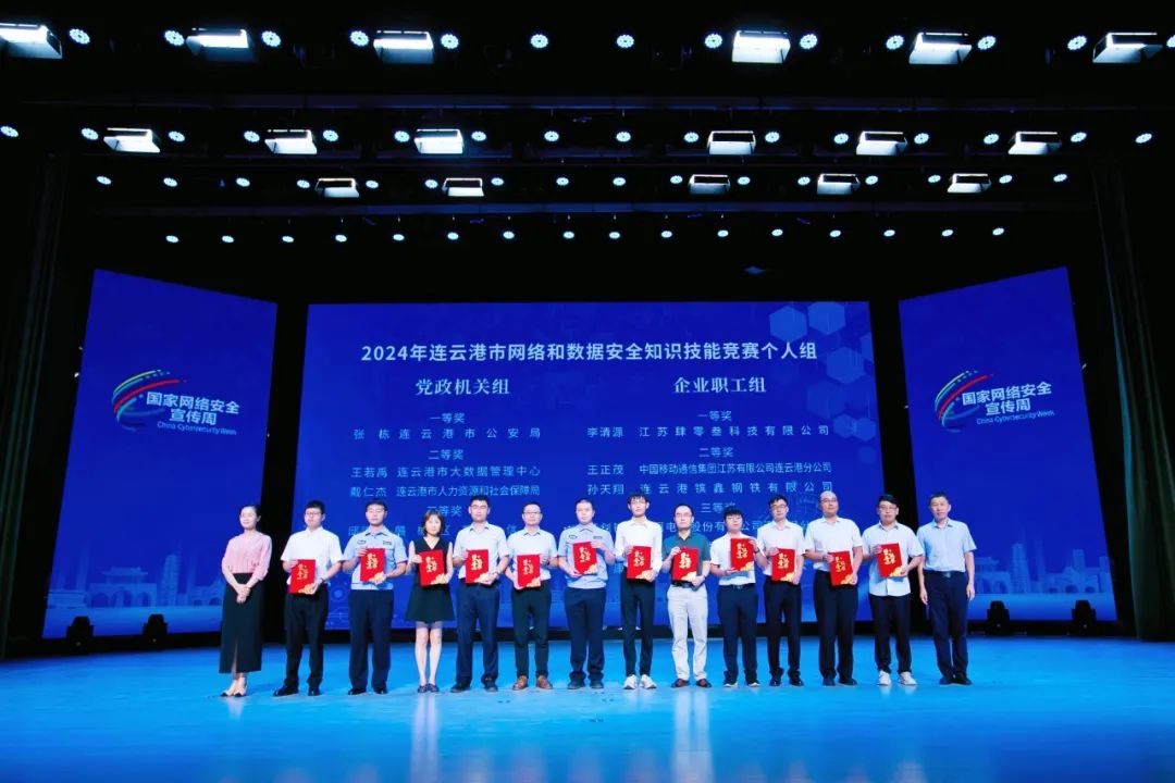 启动仪式上,公布了2024年连云港市网络和数据安全知识技能竞赛获奖名单,并进行了颁奖。还为江苏财会职业学院、中国电信连云港分公司设立“连云港市网络安全实训基地”授牌。
