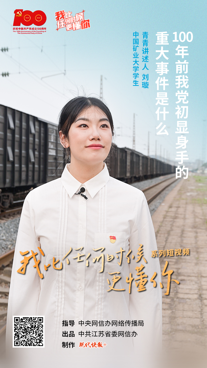 8月10日,“我比任何时候更懂你”系列短视频第17集《100年前我党初显身手的重大事件是什么?》上线,本集青青讲述人是中国矿业大学的硕士研究生刘璇。