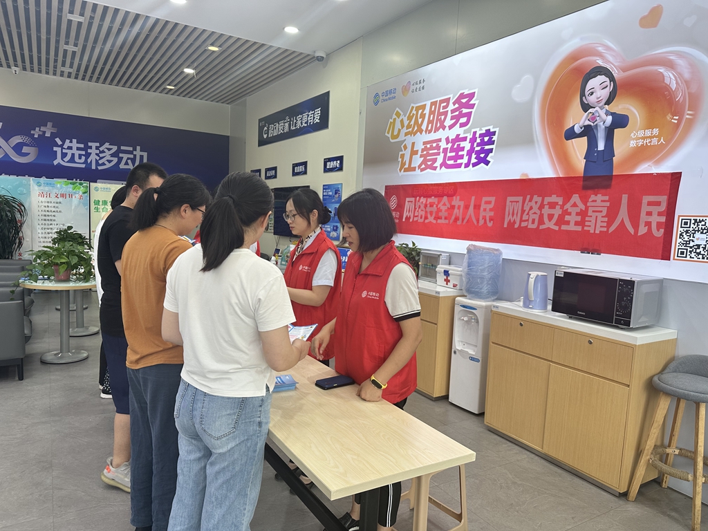 移动、联通等通信行业也在全市自有营业厅开展网络安全的现场宣传。记者在中国移动靖江分公司看到,志愿者正向群众发放宣传页,并播放网络安全警示教育片,帮助市民切实提升网络安全意识。 “我们重点宣传预防诈骗、快速识别网络金融诈骗、正确防范网络电信诈骗、有效保护个人信息和网络安全小贴士等知识,大力倡导网络安全为人民、网络安全靠人民的社会氛围。”中国移动靖江分公司靖江中洲路营业厅店长周婧介绍。