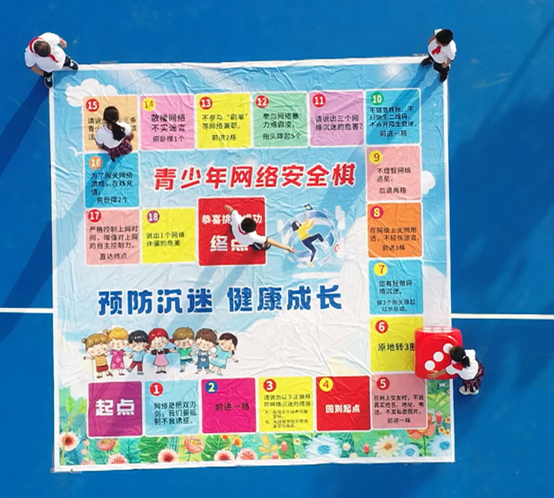 图为斜桥镇中心小学学生参加网络安全棋游戏