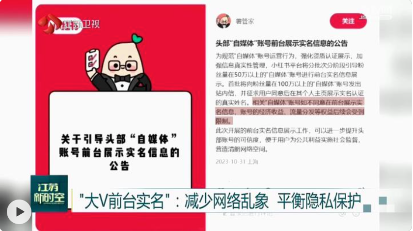 北京瀛和(南京)律师事务所合伙人律师杨栋认为,实名制可以有效遏制网络乱象、网络谣言的发生,要综合考量个人隐私。但是相比较,平台应该更倾向于去保护百万“大V”账号粉丝的知情权,综合各方面的利益来进一步去探索和完善,建立一个健康透明有序的网络环境。